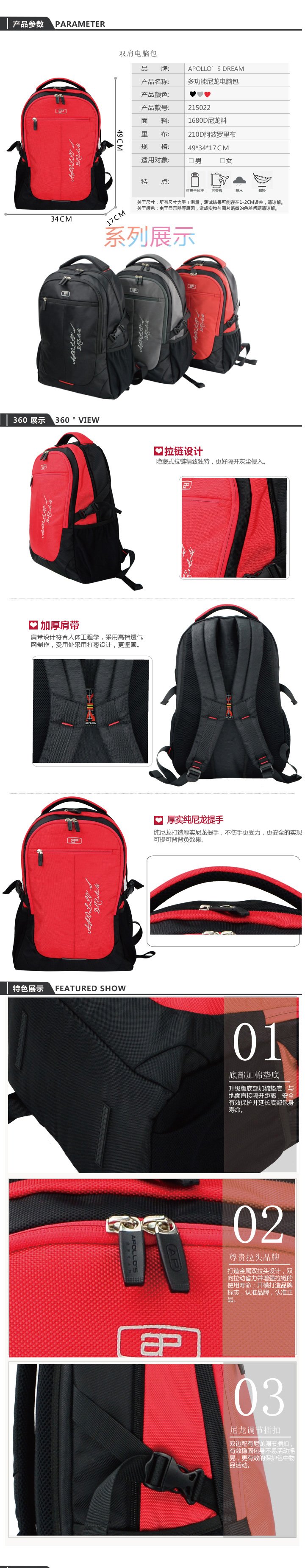 - 功能:耐磨、防泼水、减负