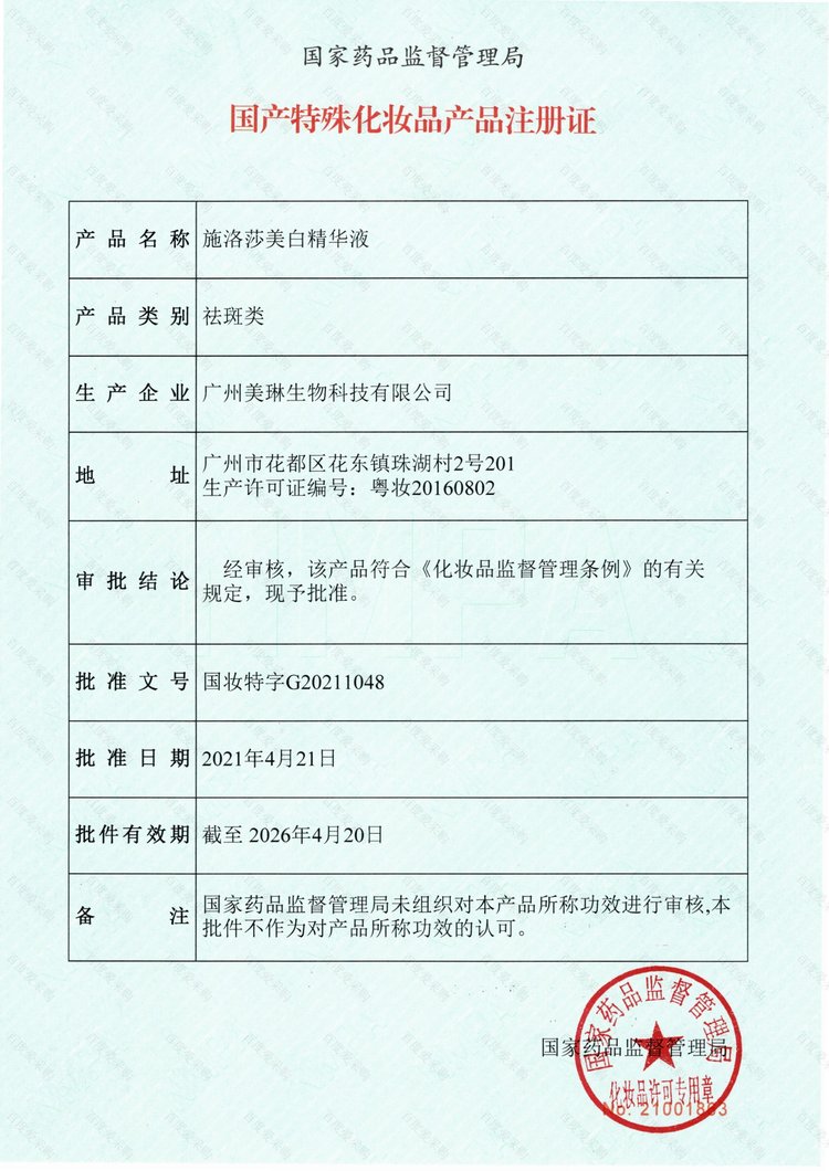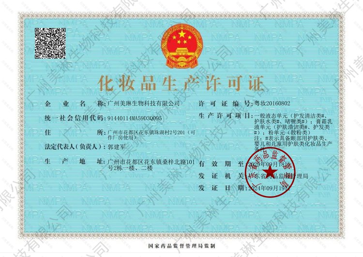 - 生产许可证编号:粤妆20160802
